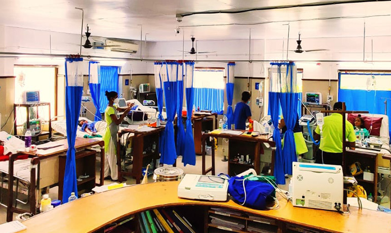 Many medical patients getting admitted are immensely benefitted from our advanced ICU facilities. Sick snake bite patients, deliberate self-harm (poisoning) patients and patients with infectious diseases have been managed with the best possible care in the state. Neonatal ICU is fully equipped with monitors and paediatric ventilators. Babies with sepsis, hypoxia, respiratory distress are admitted and treated. We also have a dialysis machine, and a specially trained staff- nurse, Mr. Sagar who has been trained in CMC Vellore in this. Our poor patients with acute kidney injury, who need dialysis as part of their intensive care, are benefitted from this. Patients below the poverty line can avail the Ayushman Bharat Scheme for admission to our centre; for general surgery and general medicine.