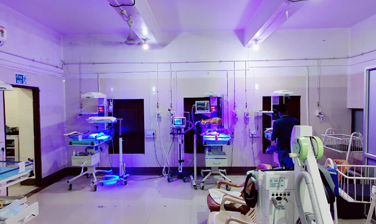 The Neonatal ICU (consisting of 12 beds) continues to serve a number of critically ill neonates, including those born preterm and low birth weight, and those with respiratory distress and sepsis. The faciliities in the intensive care unit include three adult ventilators and a neonatal ventilator.